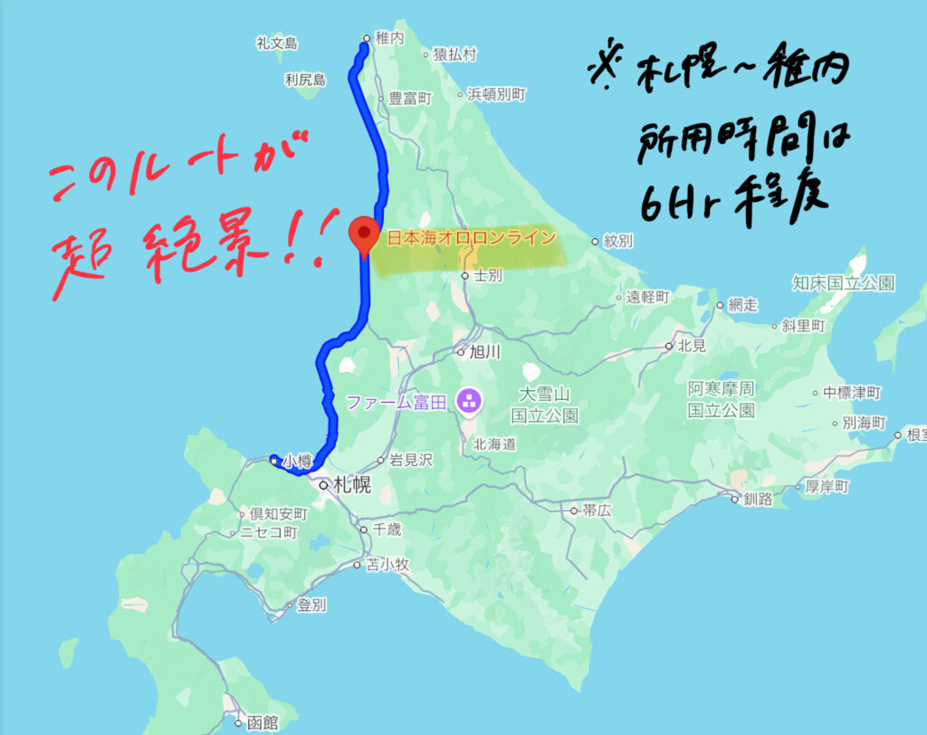 今回はその大絶景ドライブルートを通り、札幌から稚内までの道中の楽しみ方。