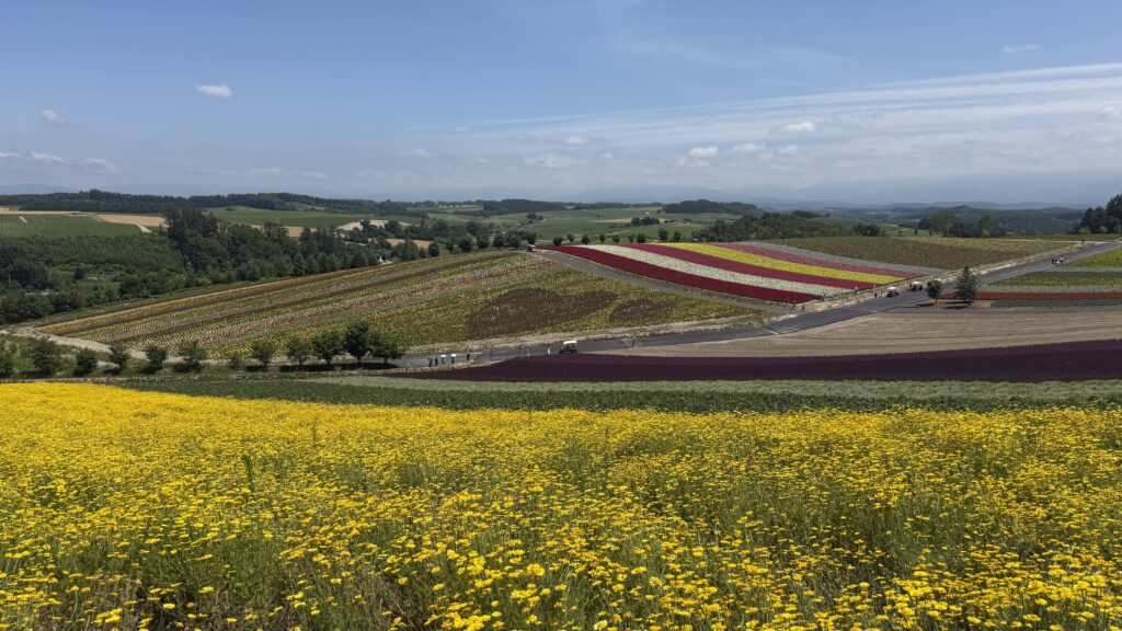 富良野といえば、ここファーム富田です。ラベンダー畑や色とりどりの花畑が有名なスポットですが、なんと入場料は無料!太っ腹ですね。