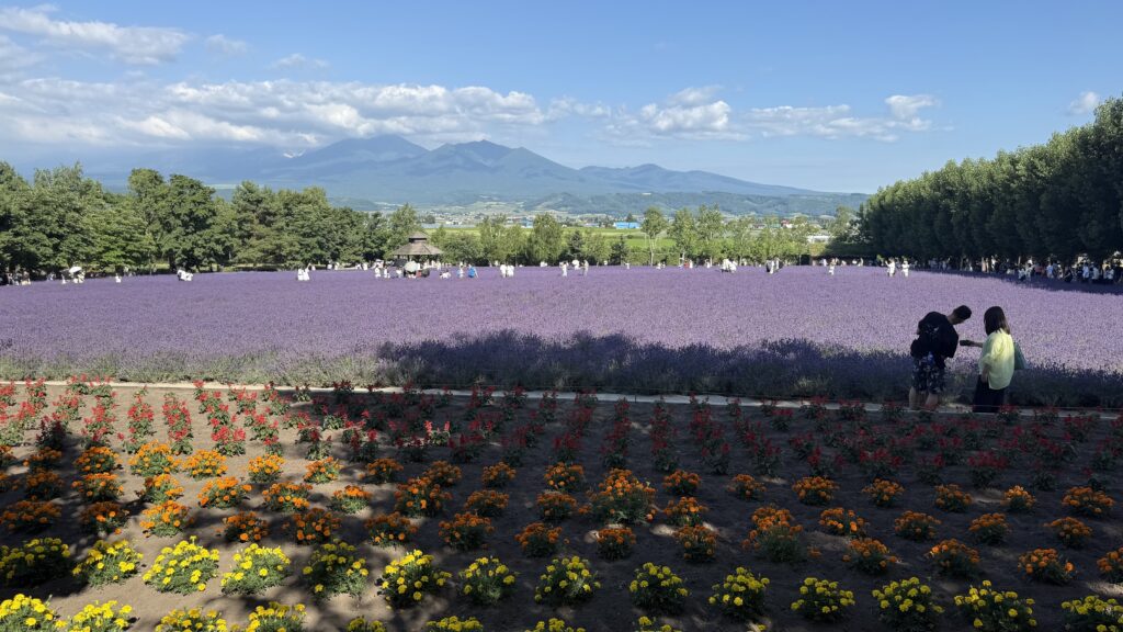 さながら、花畑の絨毯のようですね。北海道旅行を計画している男子諸君、狙っている女の子や彼女と訪れれば、間違いなく素敵な思い出になること間違いなしですよ。カップルから家族連れまで、幅広い層が楽しめる場所だと思います。