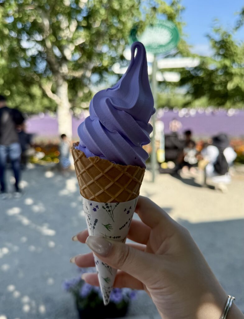 ファーム富田に来たら、あなたはきっと脳死でこの2点セットを購入しお腹に入れていることでしょう。富良野界隈の常識です。私は毎年来ているのですが、毎回このセットがやめられません。目の前のラベンダー畑の絶景が、人をそうさせるのでしょう。