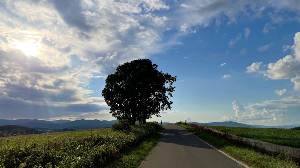 まずは「ケンとメリーの木」からですね。四季彩の丘から車で15分ほどで到着します。市街地からこの場所に向かう道中から絶景を楽しめます。一際大きいこの木があるので、「あ、これね!」となること間違いなし。