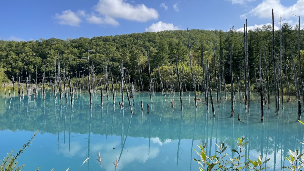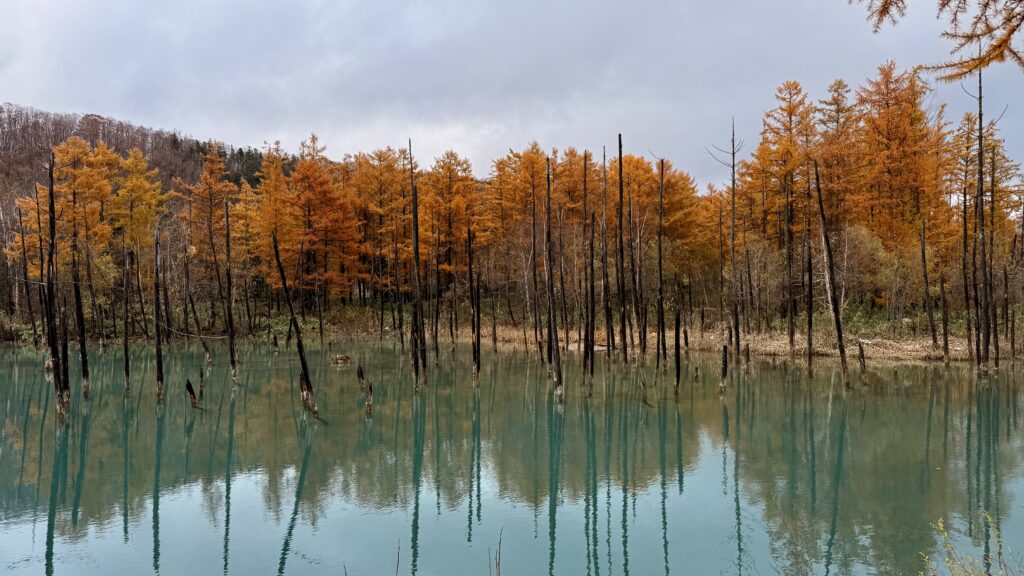 この青い池、本当に青く見えるんです。多少曇りでも青く見えるので心配しないでください。写真でも十分美しいんですが、肉眼で見るとまた彩度が違って見えるので、ぜひ行ってみてくださいね。